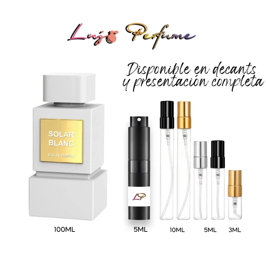 ¡Descubre el encanto de este cautivador perfume árabe en presentación completa o en nuestros decants de perfumes o probadores de 3ml, 5ml y 10ml, Solar Blanc de Emper en Lujo Perfume!